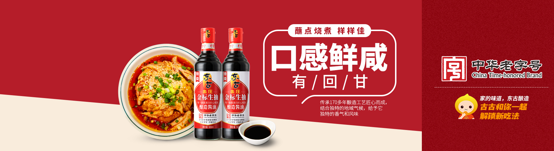 百年傳承,東古釀造,東古積攢著傳統(tǒng)的味道,用最傳統(tǒng)的釀造工藝保留著最原始的鮮美。