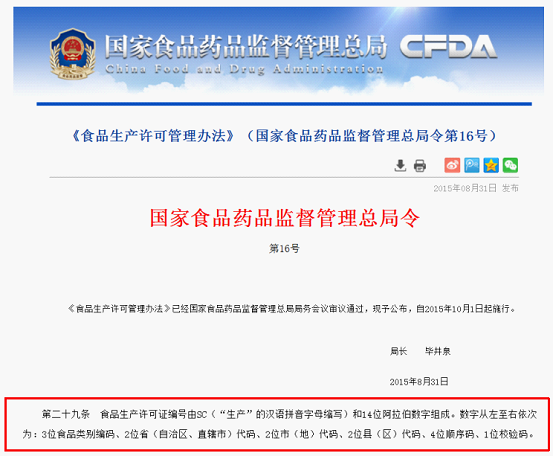 《食品生產(chǎn)許可管理辦法》(國家食品藥品監(jiān)督管理總局令第16號)