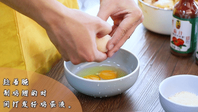 趁著腌制雞翅的時(shí)間打發(fā)好雞蛋液