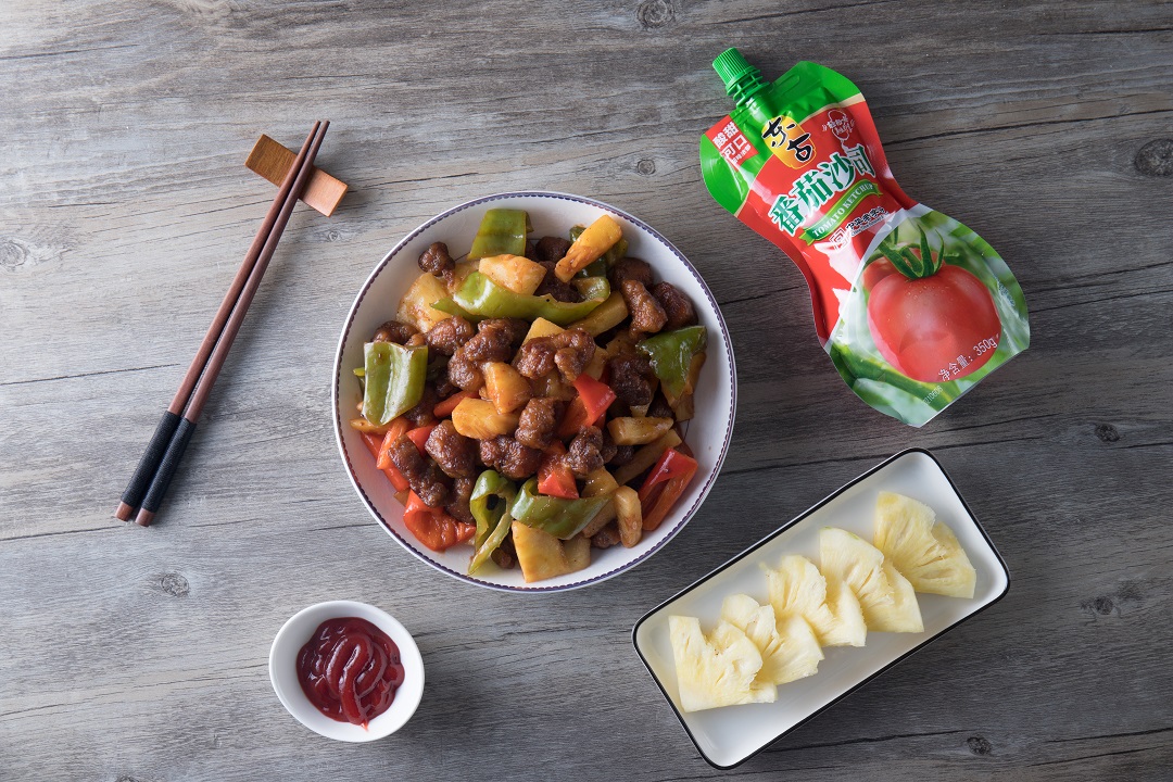 豬肉外酥里嫩,一口下去,菠蘿的清香和番茄沙司的酸甜口感相碰撞。讓人欲罷不能,好吃的停不下來!