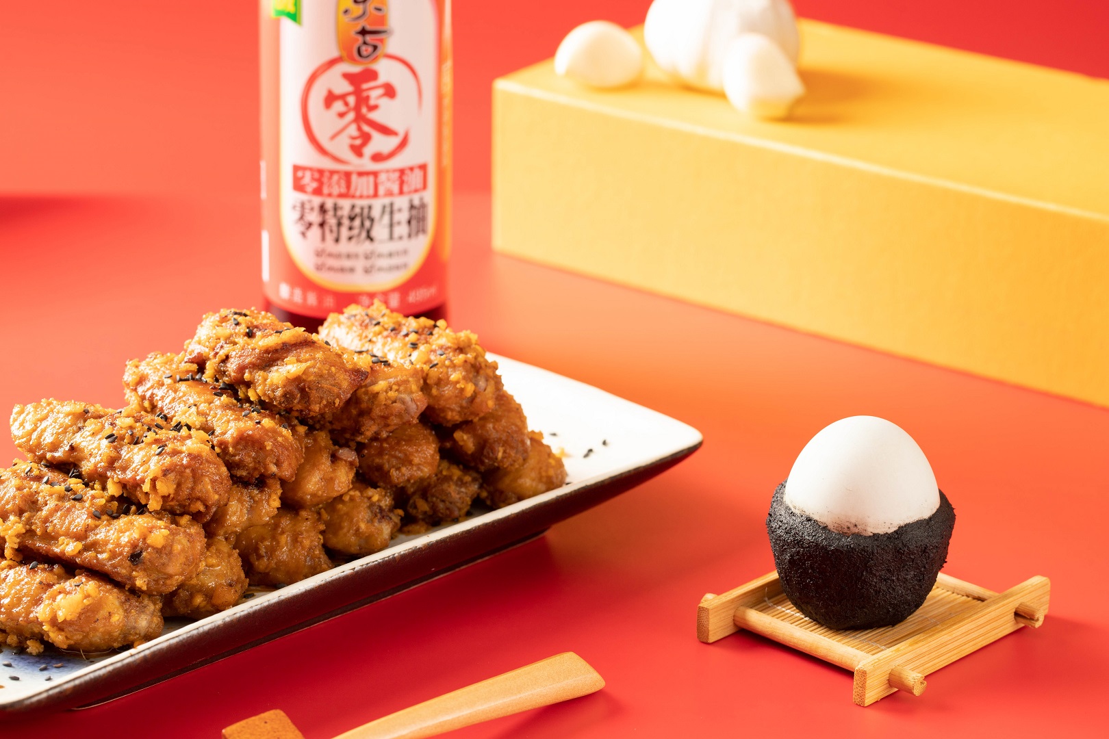 雞翅、咸鴨蛋、大蒜、黑芝麻