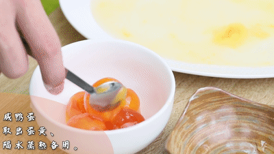 咸鴨蛋取出蛋黃、隔水蒸熟備用