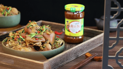 倒入香菜和小米辣炒斷生,關(guān)火倒入豬蹄,攪拌均勻讓每塊豬蹄都蘸上料汁即可