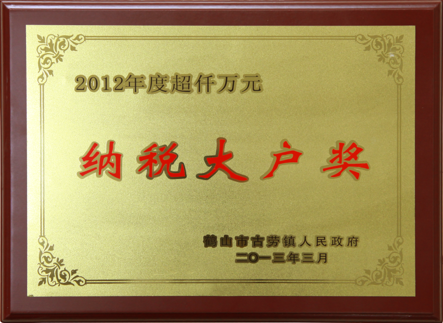 2012年納稅大戶獎(jiǎng)