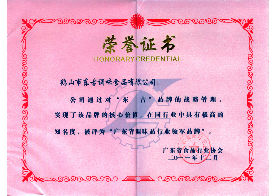 2011廣東省調(diào)味品行業(yè)領軍品牌